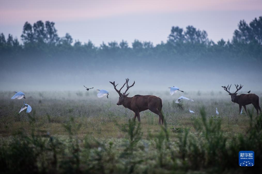 时至盛夏,位于湖北天鹅洲长江故道边的湖北石首麋鹿国家级自然保护区迎来了一场夏日的狂欢。