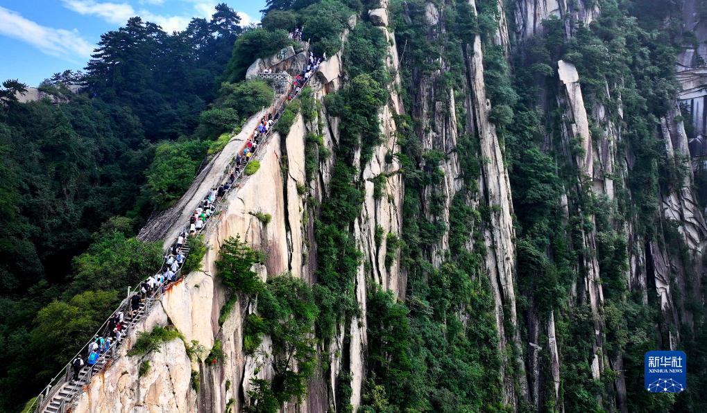 进入暑期旅游旺季,位于陕西省渭南市的西岳华山迎来五湖四海的游客。据了解,自7月以来,华山景区日均游客接待量已超过2万人次。
