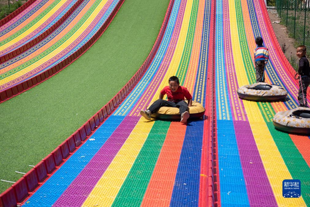 8月12日,小朋友在宁夏固原市泾源县大湾乡杨岭村玩耍。新华社记者 李旭伦 摄