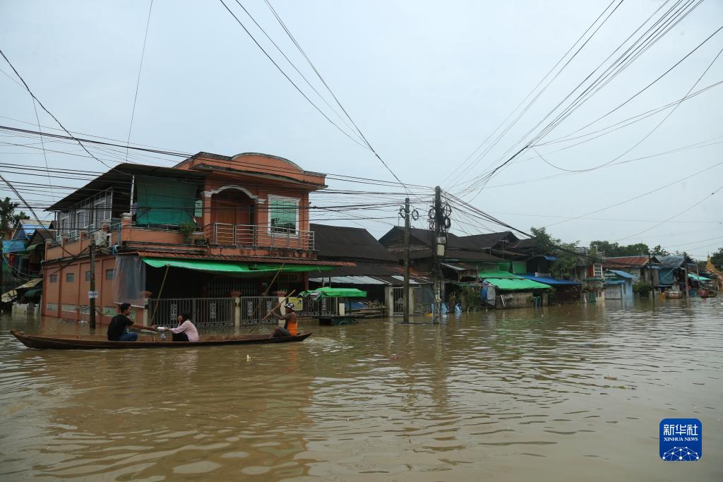 这是8月12日拍摄的缅甸勃固镇洪灾区。新华社发(苗觉梭摄)
