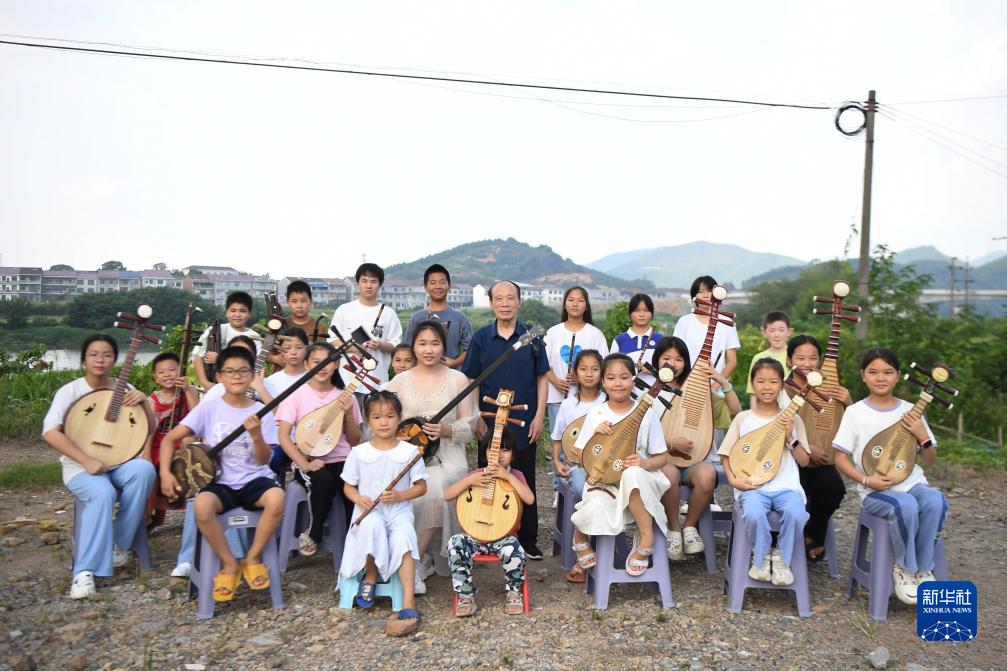 这是8月12日在枧头洲村拍摄的李舒尤(中)和学生们的合影。