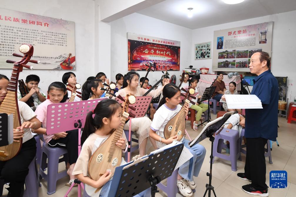 8月12日,李舒尤(右一)在枧头洲村舒尤乐坊给学生们上课。