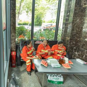 连日来,重庆市持续高温。重庆市沙坪坝区建立的“劳动者港湾”成为许多户外劳动者歇脚避暑的去处。