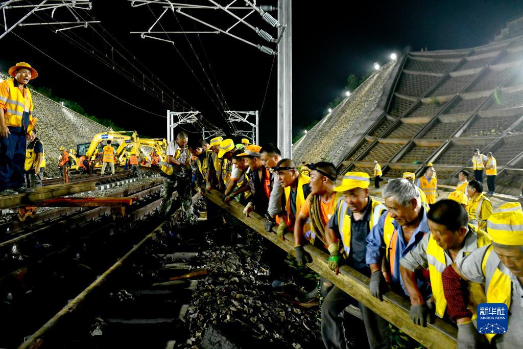 8月12日,中铁十局的工作人员在济郑高铁山东段大庙屯线路所42号道岔I级施工。