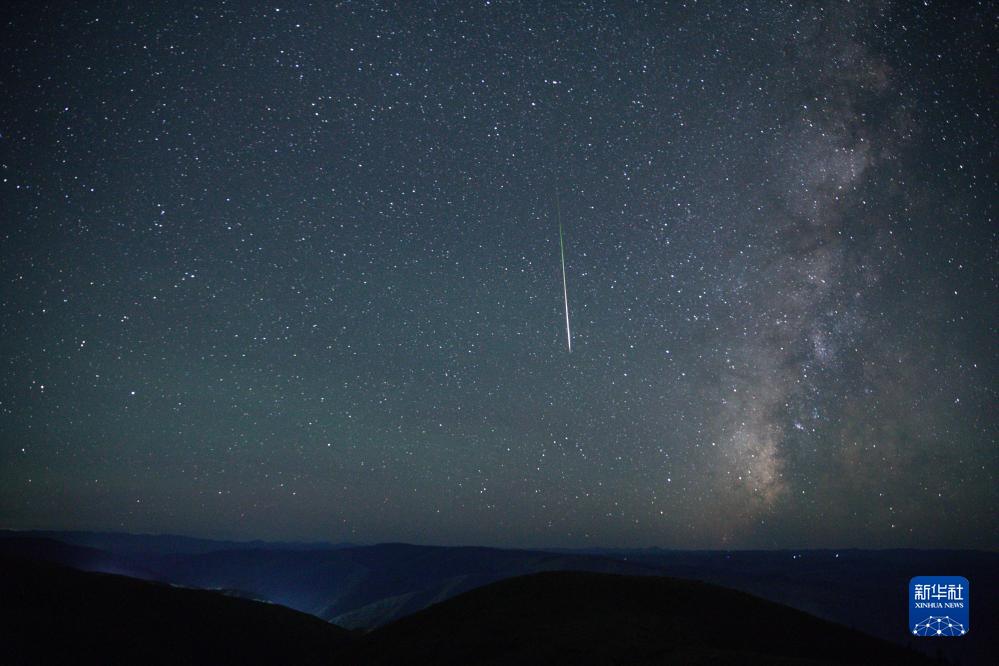 在四川省红原县安曲镇,英仙座流星雨划过夜空(8月13日摄)。