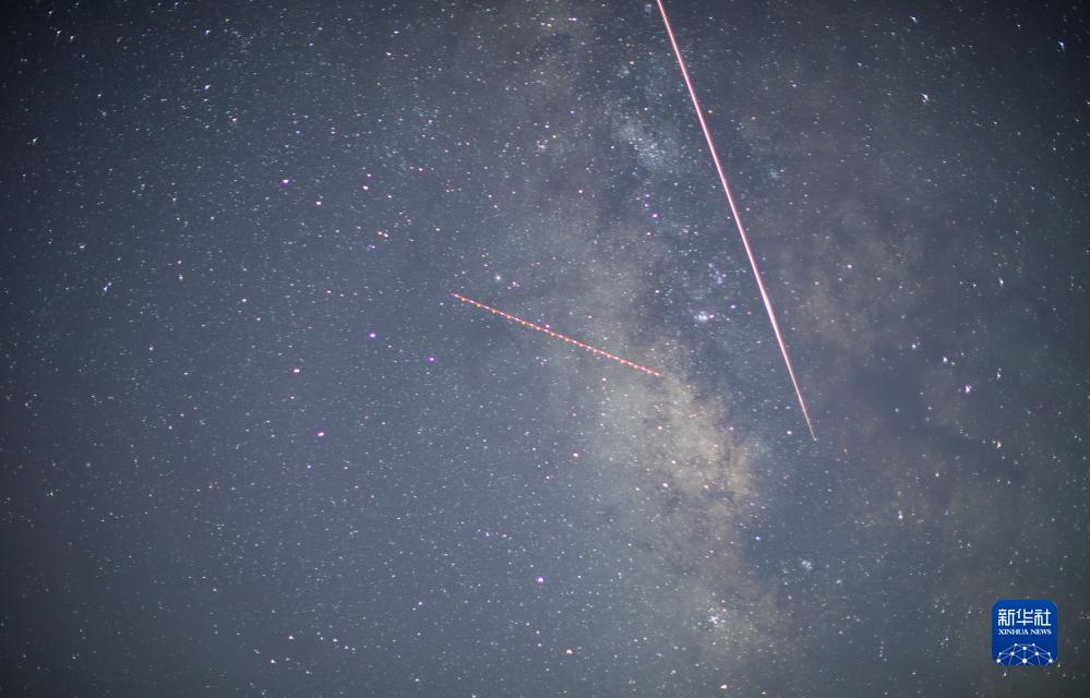 在四川省三台县鲁班镇,英仙座流星雨划过夜空(8月13日摄)。