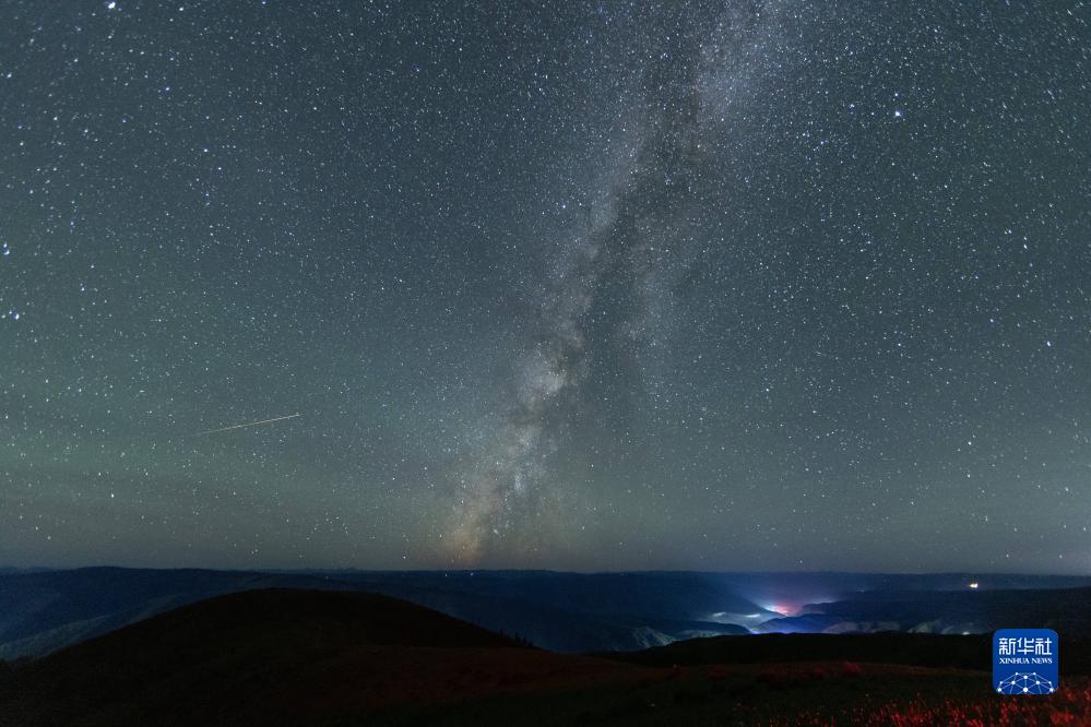在四川省红原县安曲镇,英仙座流星雨划过夜空(8月13日摄)。
