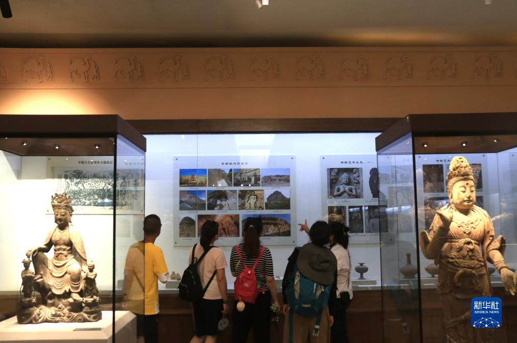 8月6日,游客在甘肃省敦煌市阳关景区内的博物馆参观。