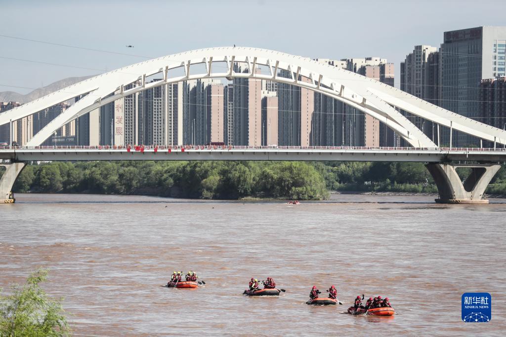8月14日,参演队员在黄河兰州段奥体中心附近水域开展水域救援实战化演练。