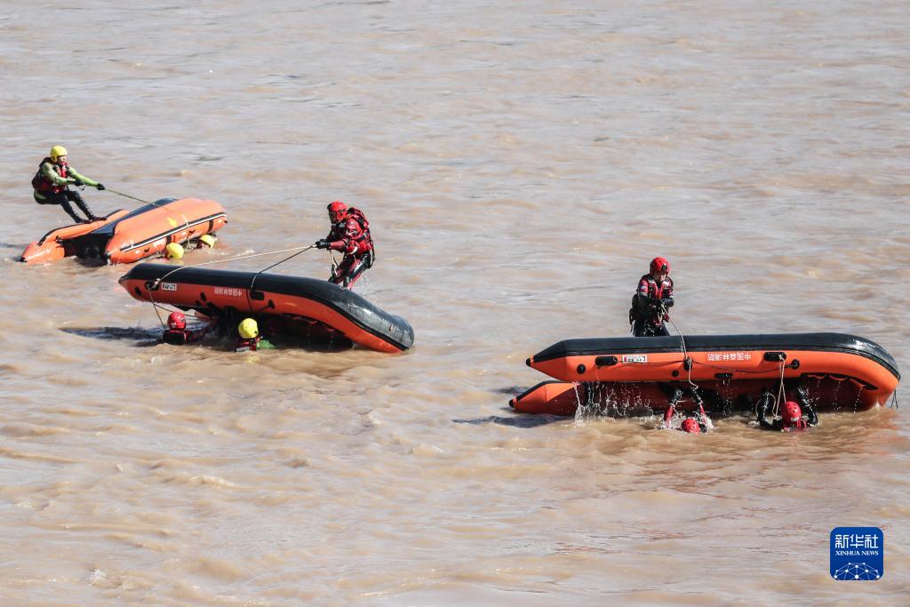 当日,甘肃省防汛抗旱指挥部在黄河兰州段开展“蓝焰逐浪·2023”水域救援实战化演练。演练模拟强降雨致河水上涨,群众被困、落水漂流等情景,甘肃省消防救援总队、甘肃省森林消防总队和蓝天救援队等围绕情景主线开展应急救援演练。
