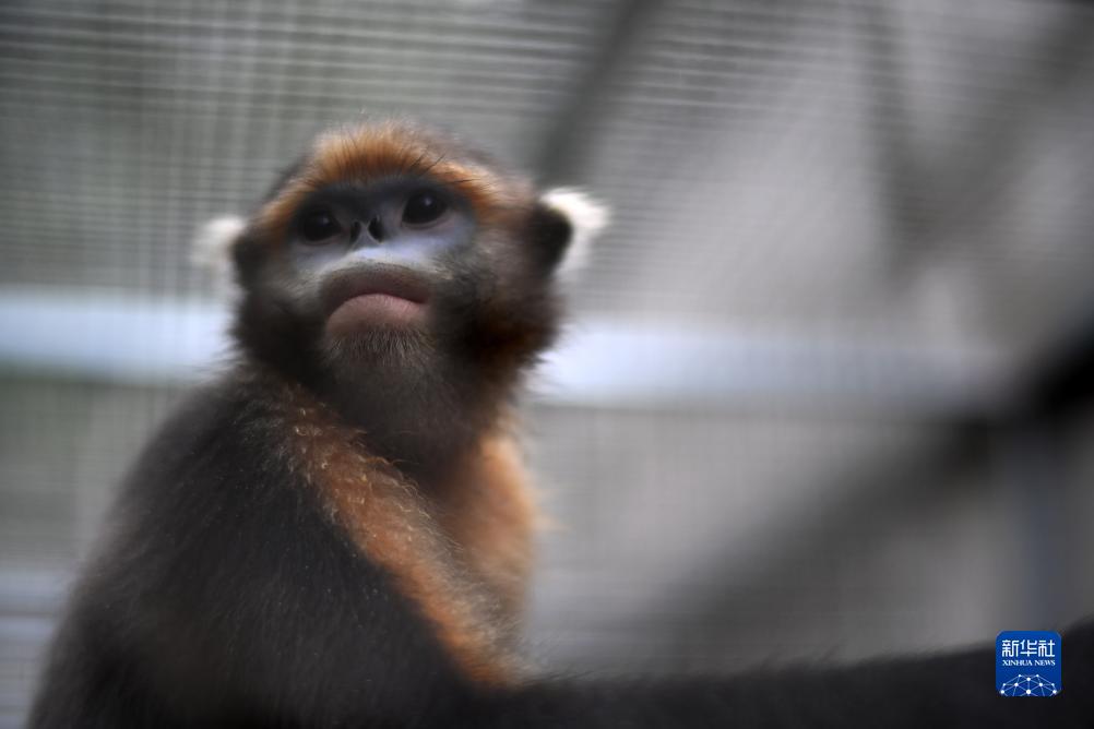 这是8月14日在梵净山野生动物救护中心拍摄的黔金丝猴。