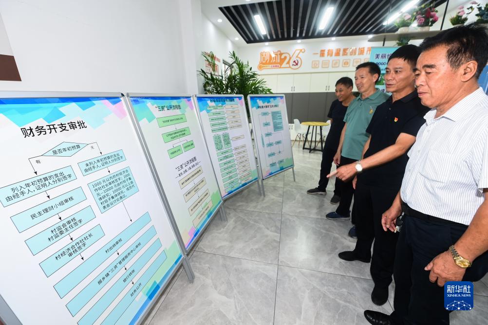 8月15日,织里镇云村村的村民代表正在“清廉乡村”展览板前观看学习“清廉乡村”知识。