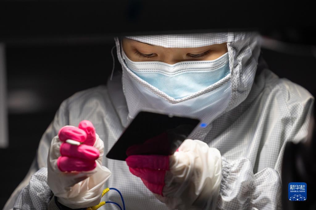 8月14日,在赣州市同兴达科技有限公司(金凤梅园厂区),工作人员进行手机屏幕FV2外检。