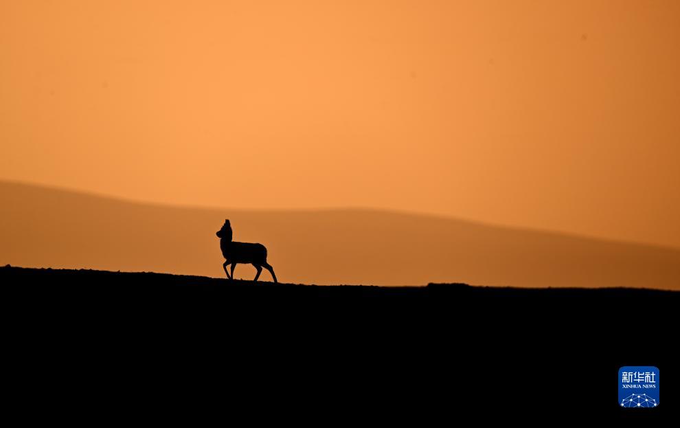 一只雌性藏羚羊在可可西里卓乃湖区域活动(6月18日摄)。