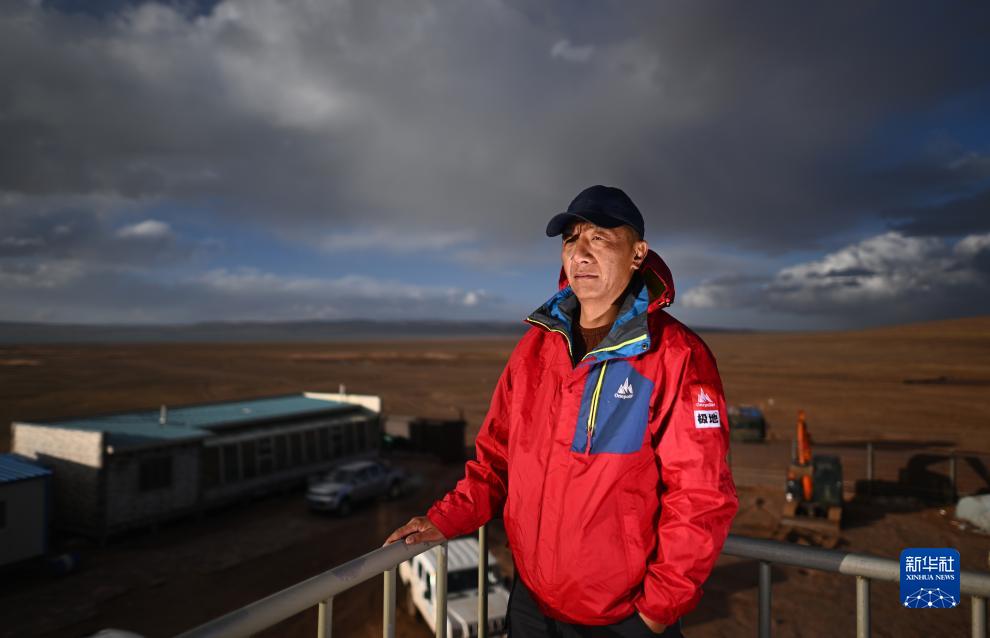 可可西里管理处卓乃湖保护站副站长郭雪虎在卓乃湖保护站(6月17日摄)。