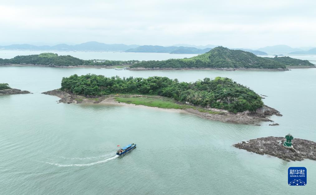 宁海湾海岛护鸟队员在海岛间巡逻(6月13日摄,无人机照片)。浙东宁海湾是重要的鸟类栖息地,位于湾区的强蛟镇组建了由渔民、民警、党团志愿者等组成的海岛护鸟队,看护这片鸟类乐园。