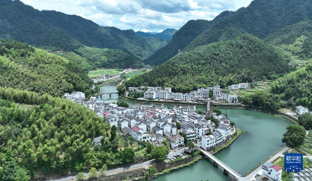绿水青山环抱的杭州淳安下姜村(7月3日摄,无人机照片)。