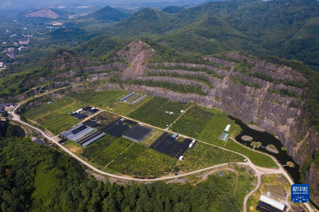 浙江省湖州市吴兴区东林镇三合村一处废弃矿山经过生态修复后成为花卉种植基地(8月14日摄,无人机照片)。