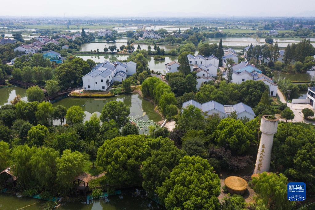 湖州市吴兴区东林镇泉益村通过全域土地综合整治建设美丽乡村,打造具有水乡特色的绿色生态旅游村(8月14日摄,无人机照片)。