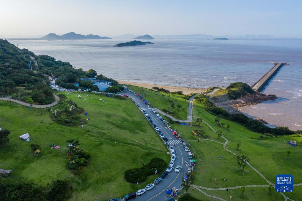 空中俯瞰临海而建的舟山普陀区螺塘线生态公路(8月6日摄,无人机照片)。螺塘线以“生态交通”为原则打造,将沿途的渔家村落、茶田、海滩、山坡、民宿等山海风光串连起来,移步换景,路景相依。