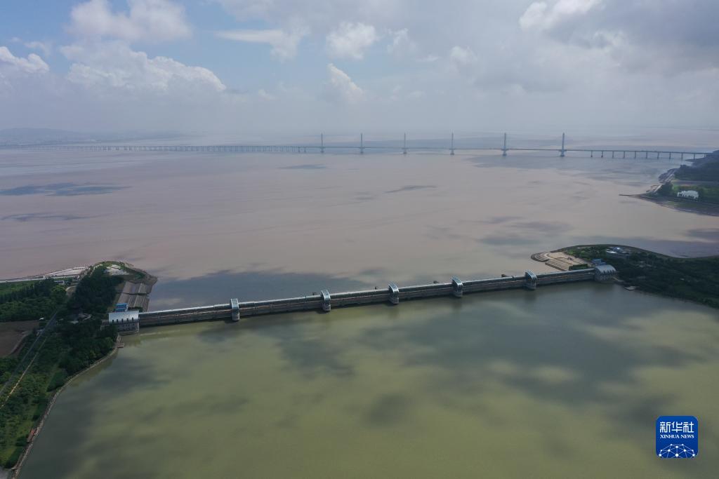 曹娥江大闸是我国强涌潮河口地区第一大闸,浙东水资源配置重要枢纽工程(8月4日摄,无人机照片)。