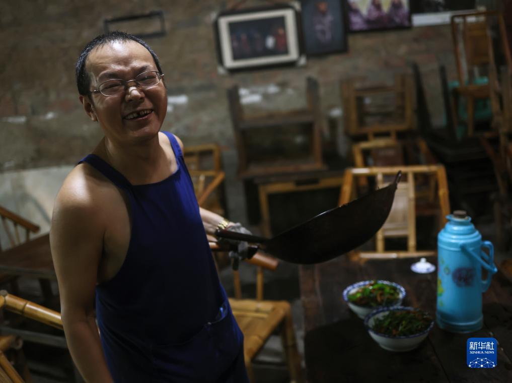 观音阁老茶馆老板李强(8月7日摄)。