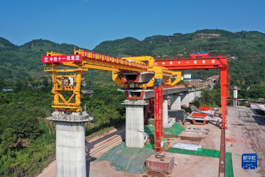 8月15日,在中铁十一局集团承建的渝湘高铁重庆段建设现场,随着作业人员将首榀重790.25吨的大型箱梁精准架设在箭杆湾双线特大桥19号至20号桥墩上,标志着渝湘高铁重庆段箱梁架设全面展开。 渝湘高铁重庆至黔江段是国家中长期铁路网规划“八纵八横”中厦渝通道的重要组成部分,从重庆站引出,途经渝中、南岸、巴南、南川、武隆、彭水等区县,止于重庆市黔江区,正线全长269.521公里,设计时速350公里。据悉,渝黔铁路建成通车后,与黔常铁路、渝厦高铁常德至长沙段连接,成为成渝城市群、长江中游城市群、海西城市群间高速客运交流的通道,将有效填补渝东南武陵山区城镇群没有高铁的空白,与重庆主城区实现1小时通达,成渝地区双城经济圈与长江中游城市群、海峡西岸城市群的快捷通道全面打通,对拉动投资、发展产业、带动就业、助推乡村振兴、助推西部地区发展具有重大意义。