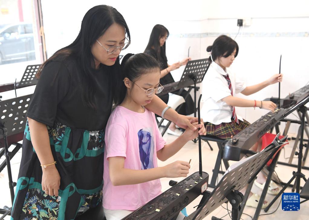 8月13日,东兴京族博物馆馆长、独弦琴传承人苏海珍在指导学生练习。