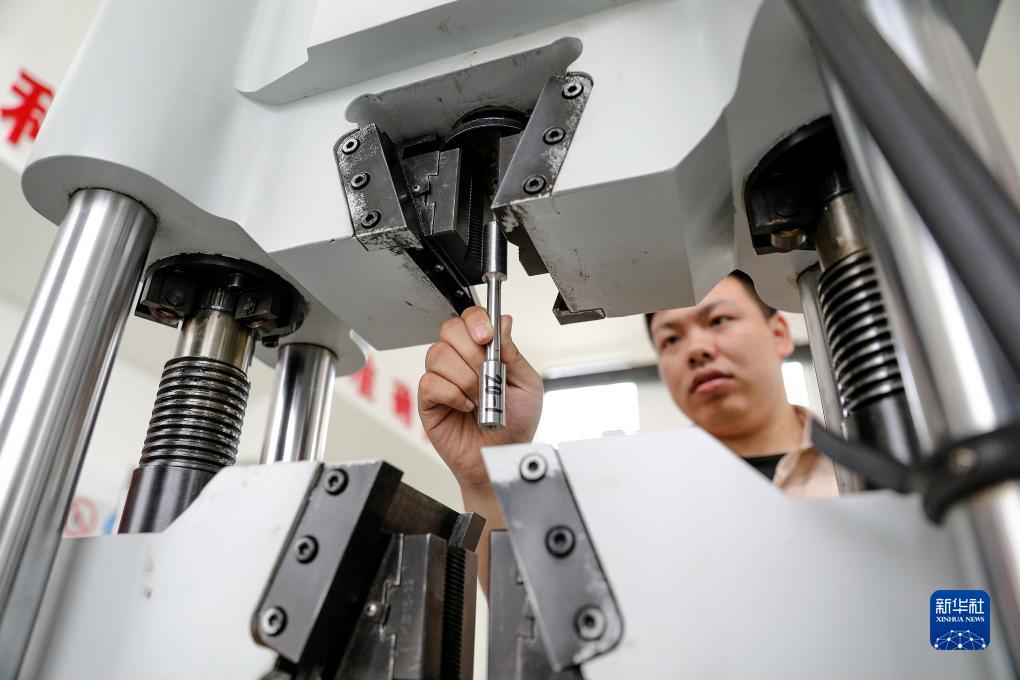 8月15日,河北衡水高新技术产业开发区一家交通科技企业的工人在测试产品质量。