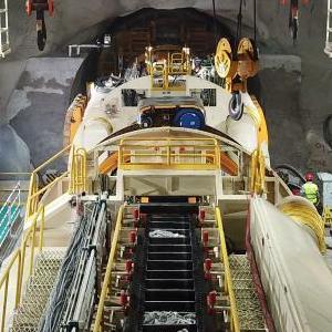 8月15日,在湖南平江抽水蓄能电站引水隧洞建设现场,工作人员查看“天岳号”掘进机作业情况。