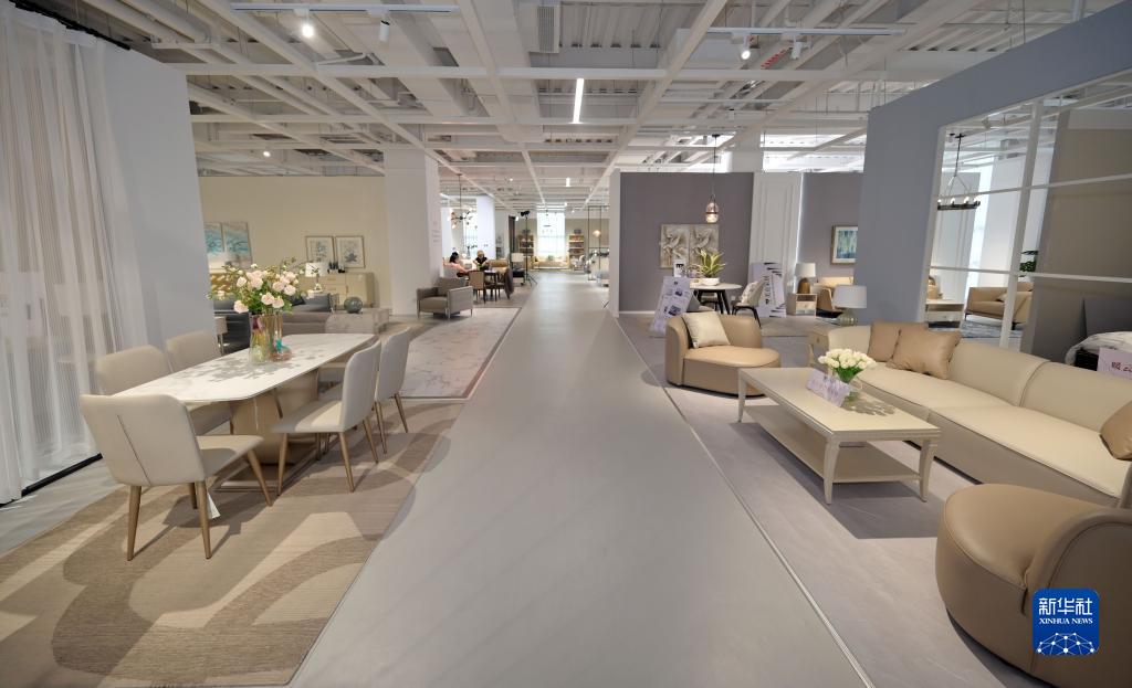 8月15日,在江西省赣州市南康区美克美家美克数创(赣州)家居智造有限公司,展厅里展示各种家具。