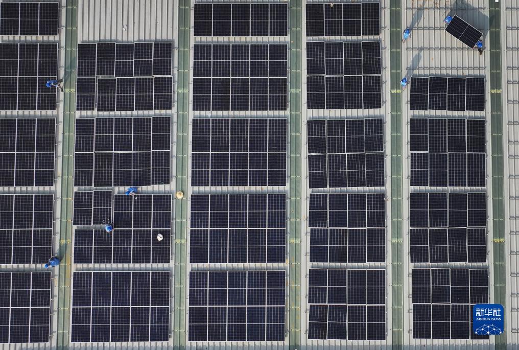 连日来,在河北省唐山市海港经济开发区各企业的厂房屋顶,工人抢抓工期,安装光伏发电板,现场一片忙碌景象。