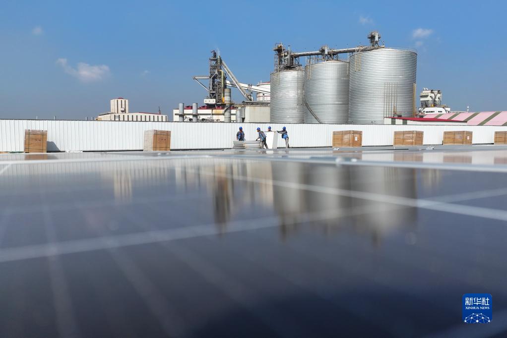 连日来,在河北省唐山市海港经济开发区各企业的厂房屋顶,工人抢抓工期,安装光伏发电板,现场一片忙碌景象。