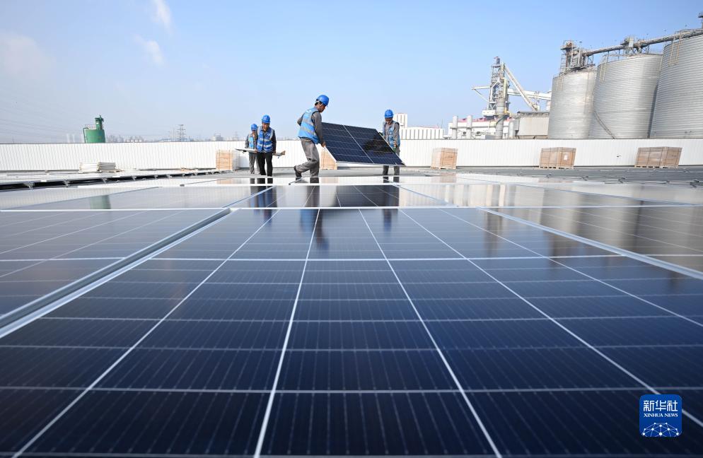 连日来,在河北省唐山市海港经济开发区各企业的厂房屋顶,工人抢抓工期,安装光伏发电板,现场一片忙碌景象。