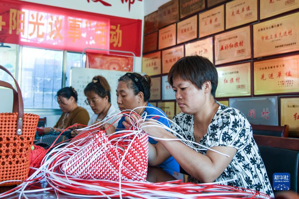 8月15日,马山镇小崔村居民在合作社内加工藤柳编产品。