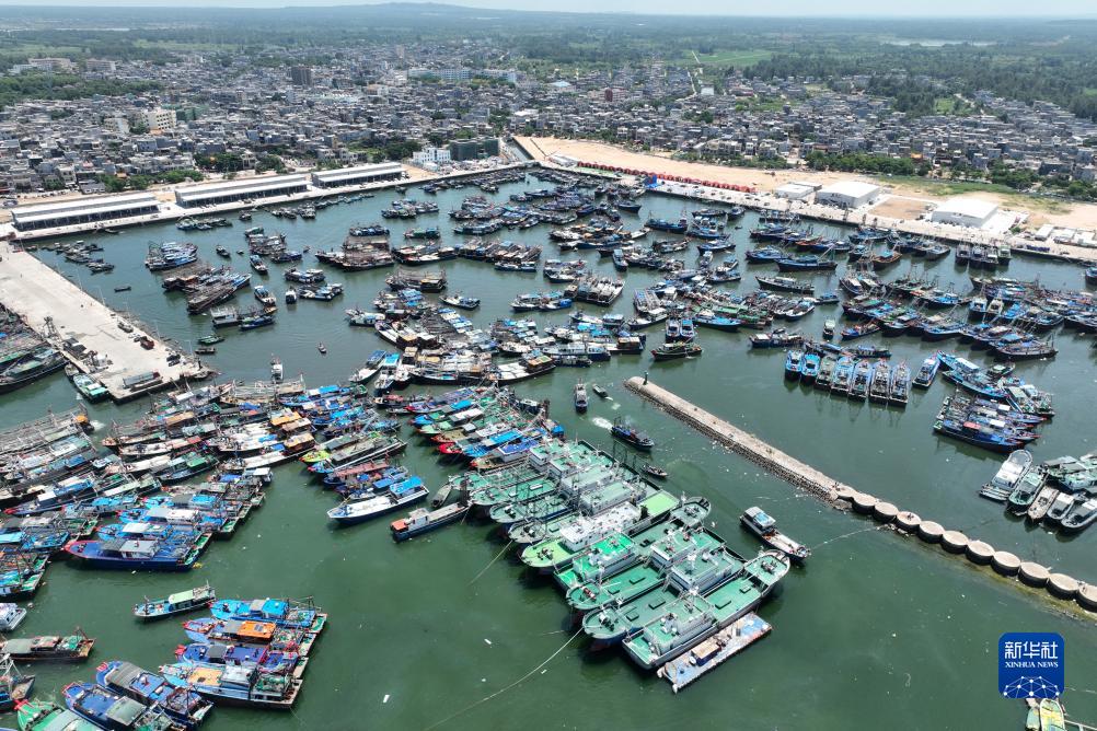 这是8月16日在海南省临高县新盈港拍摄的准备开渔的渔船(无人机照片)。