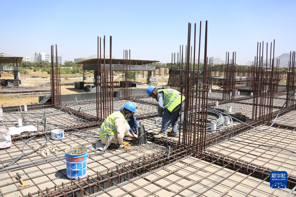 8月13日,阿富汗工人正在喀布尔西郊一处中企承建项目工地工作。