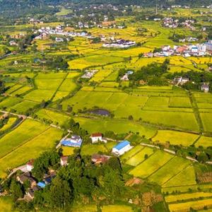四川省广安市广安区大安镇南桥村水稻泛黄成熟(无人机照片,8月15日摄)。