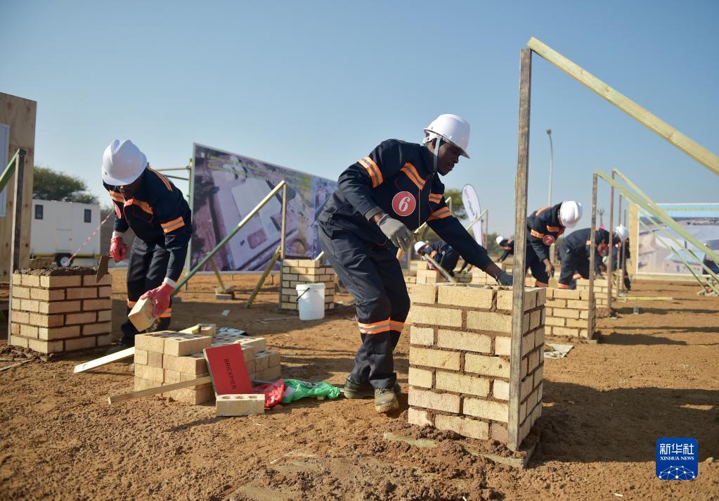 8月15日,在博茨瓦纳莫舒帕,当地员工在正太集团举办的员工技能大赛上进行砌墙比赛。