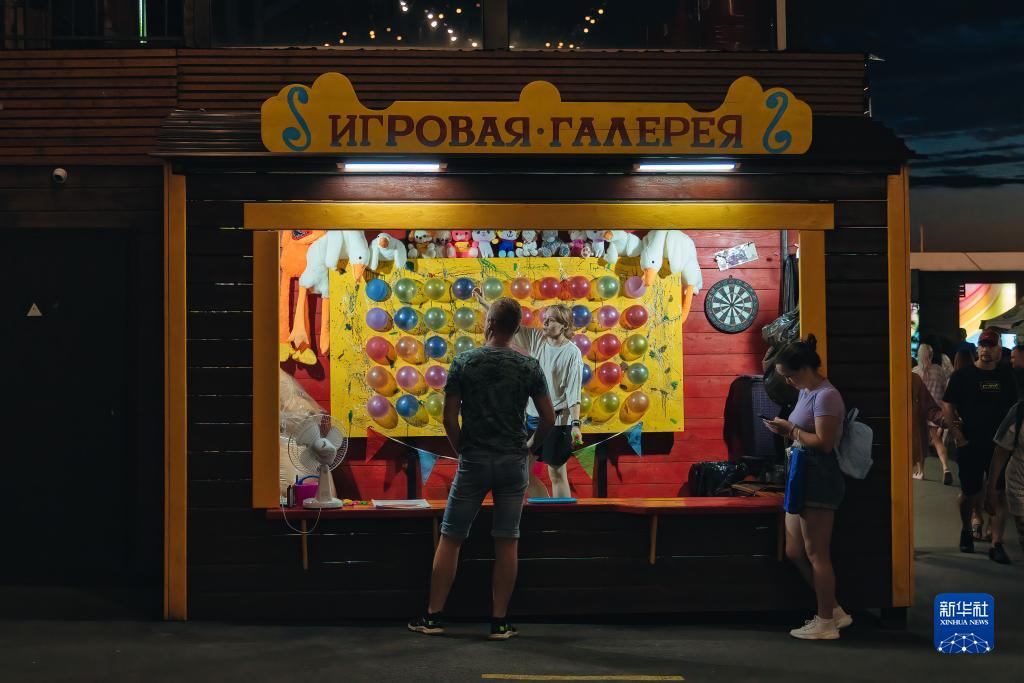 这是8月16日拍摄的位于俄罗斯远东城市符拉迪沃斯托克阿穆尔湾的游艺小摊。