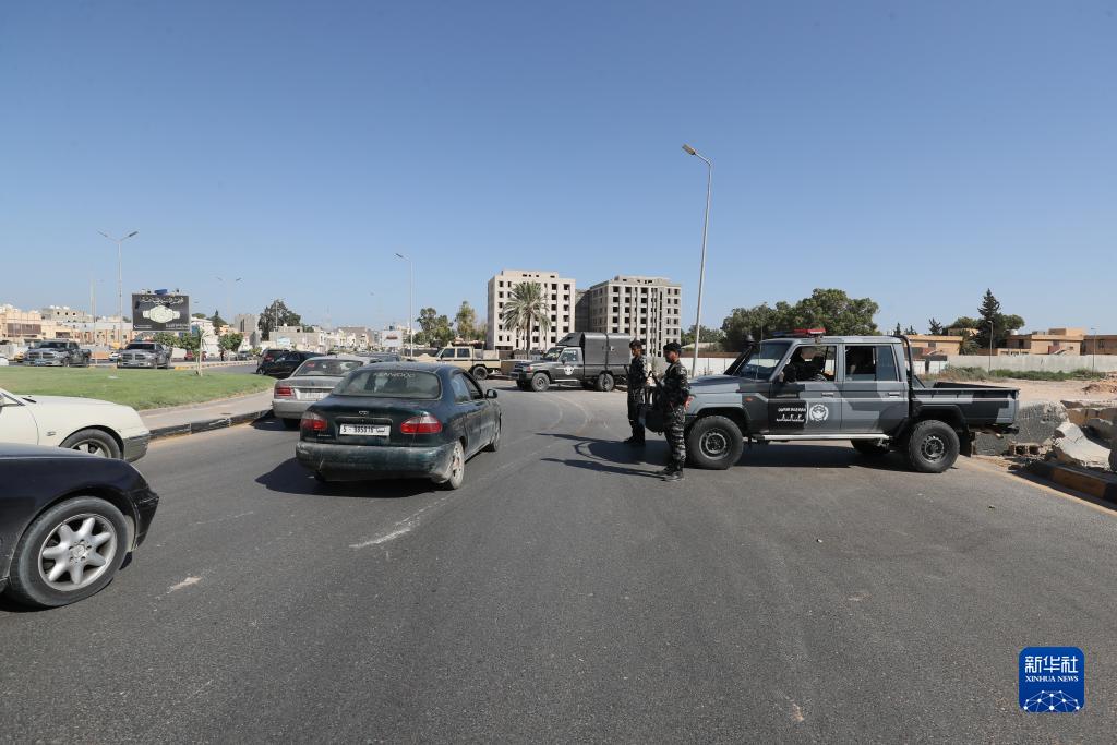 8月16日,利比亚冲突停火后,利比亚内政部执法部队在的黎波里的艾因扎拉区保障安全。