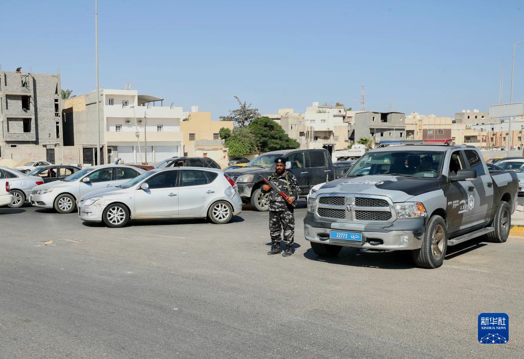 8月16日,利比亚冲突停火后,利比亚内政部执法部队在的黎波里的艾因扎拉区保障安全。