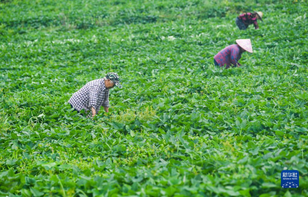 8月16日,村民在重庆市石柱土家族自治县王家乡光华村红薯地里劳作。