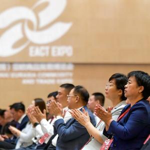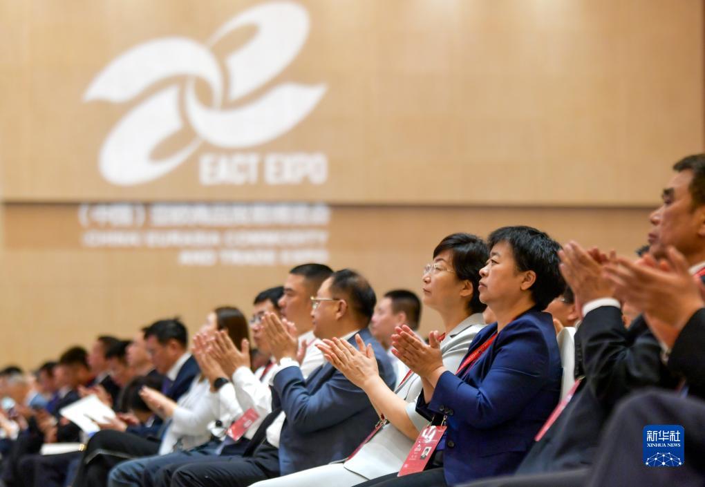 8月17日,参会代表在2023(中国)亚欧商品贸易博览会开幕式上。