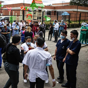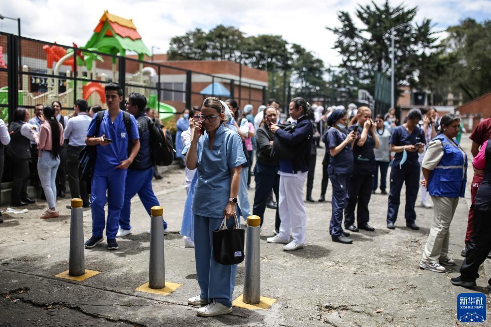 8月17日,在哥伦比亚首都波哥大,人们在地震发生后的街头避难。