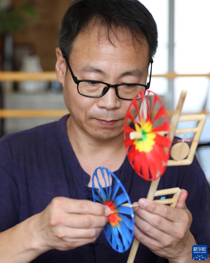 传统吉祥轮彩纸风车代表了喜庆和吉祥,作为辽宁营口崔氏传统吉祥轮彩纸风车制作技艺第四代传承人,今年43岁的崔凯将原来传统风车制作流程和制作工艺进行创新和改良。