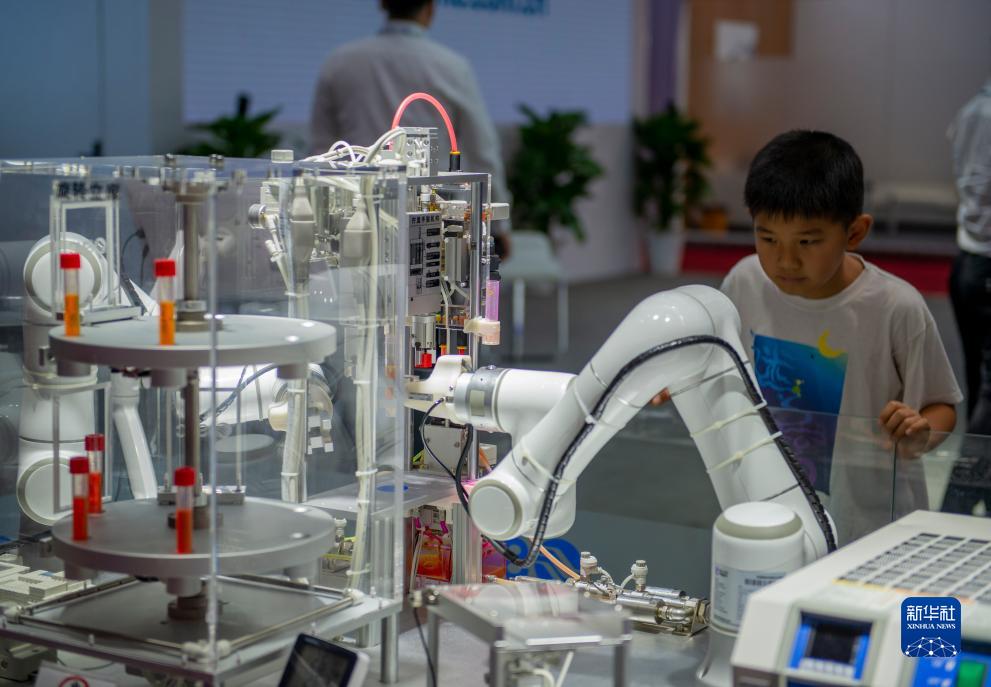 这是8月17日在2023世界机器人大会现场拍摄的智能灌液演示装置。