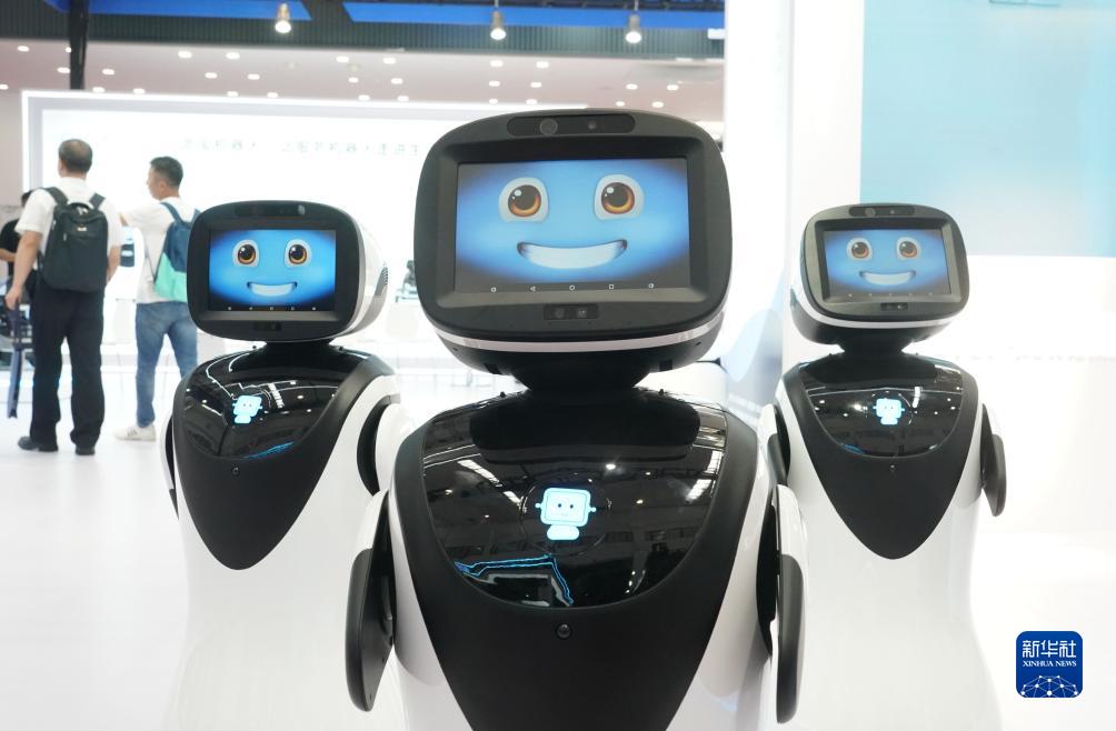 这是在2023世界机器人大会现场拍摄的服务机器人(8月17日摄)。