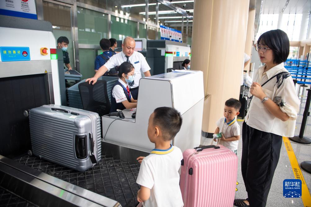 8月18日,旅客在湖南湘西边城机场办理行李托运手续。