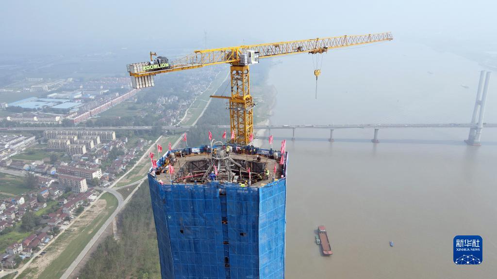 京台高速铜陵长江公铁大桥主塔全部封顶